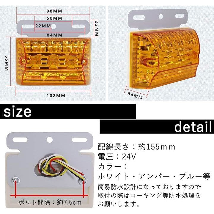 24V 車 用 24LED トラック サイドマーカー アンダーライト 付 10個 セット 防水 105mmx87mmx35mm SN-212-N1