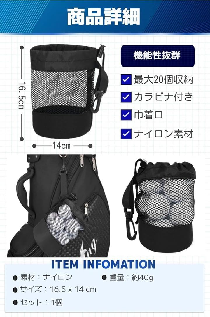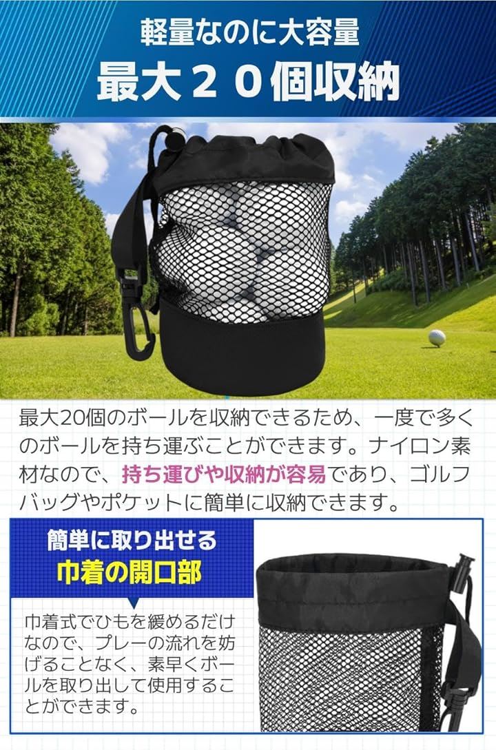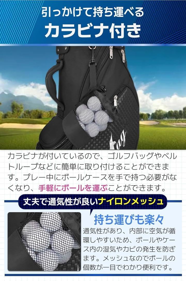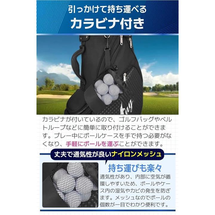 ゴルフボールケース 大容量 カラビナ付き メッシュ 収納ケース