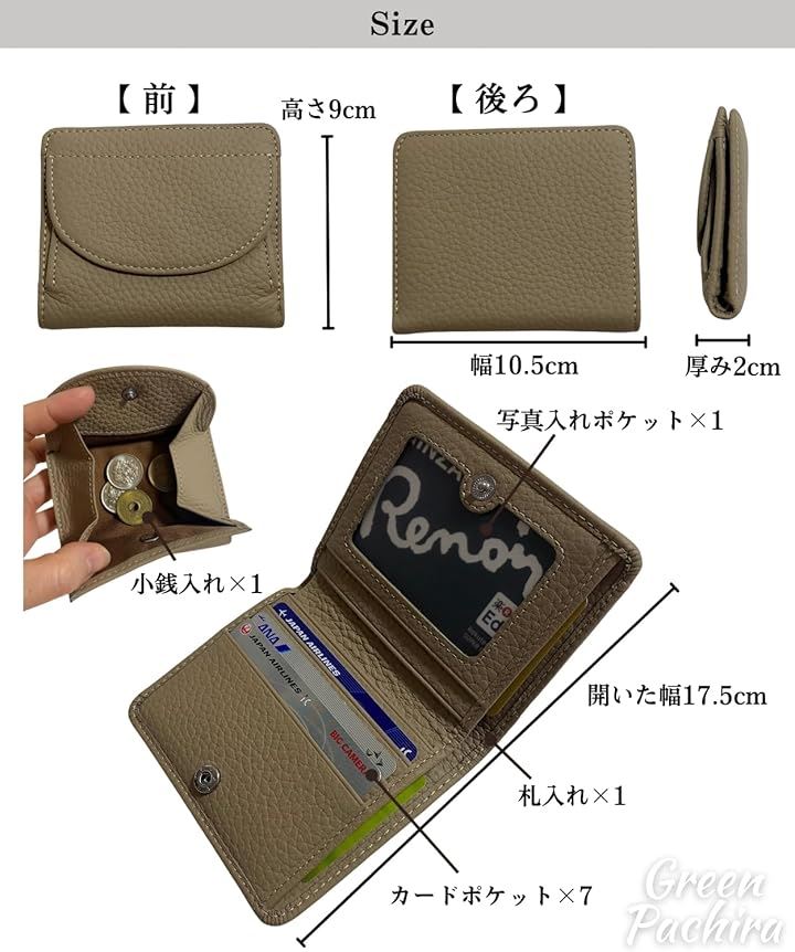 財布 レディース 二つ折り ミニ財布 本革 コンパクト ボックス型 小銭入れ 小さい財布 ミニウォレット ミニマリスト