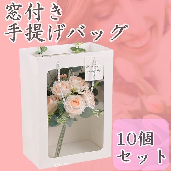 ギフトバッグ 窓付き 10枚 手提げ袋 プレゼント 包装 贈り物 a337 M:30x20x16cm