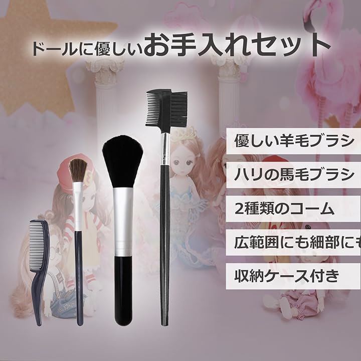 天然毛 ドールブラシ 人形 フィギュア お手入れ ほこり取り 櫛 セット ケース付