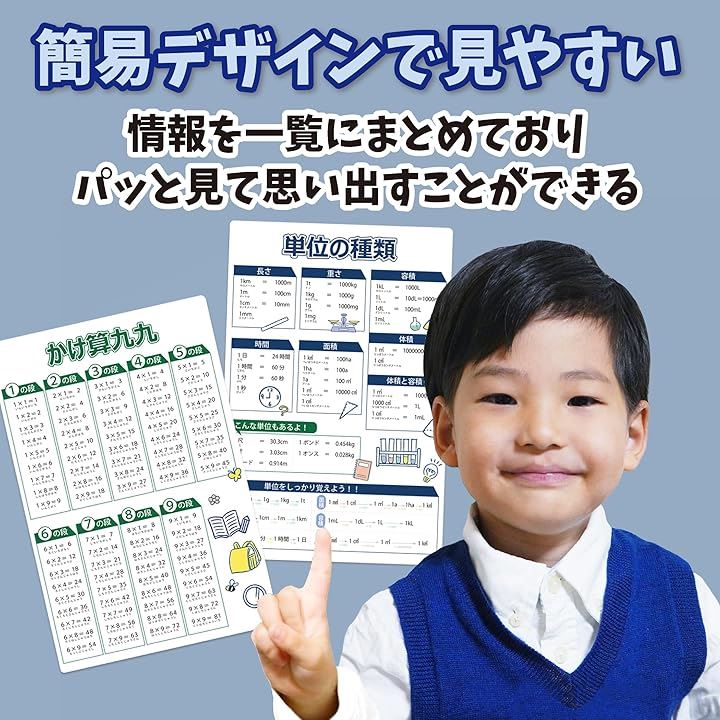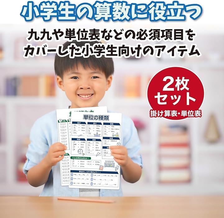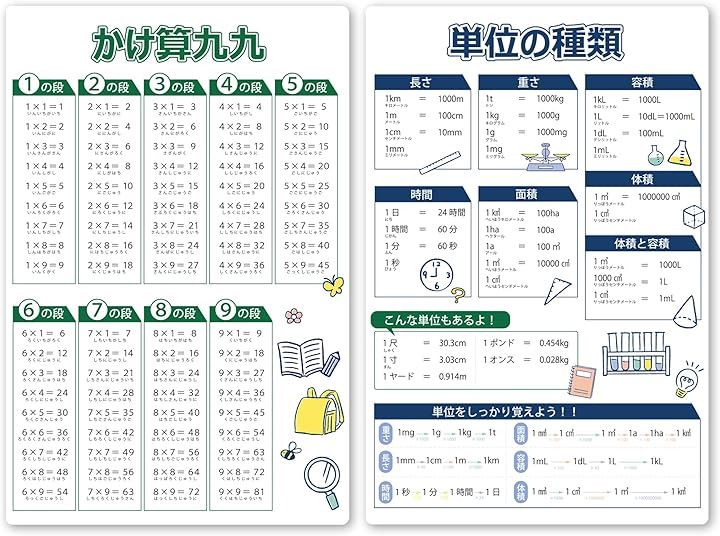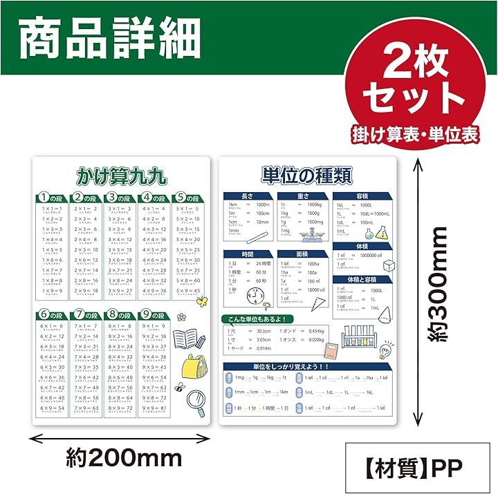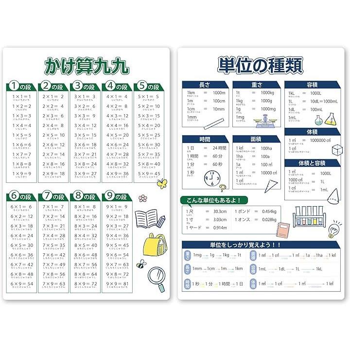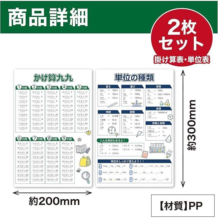 EdisonBrain 勉強下じき 掛け算 九九 算数 単位表 早見表 小学2年生 小学1年生 小学生 300x200mm 2枚セット