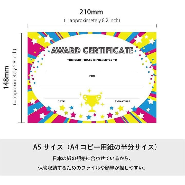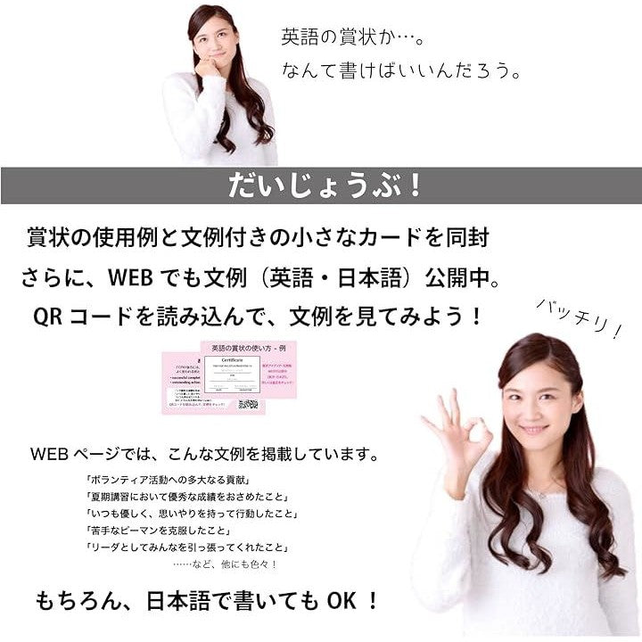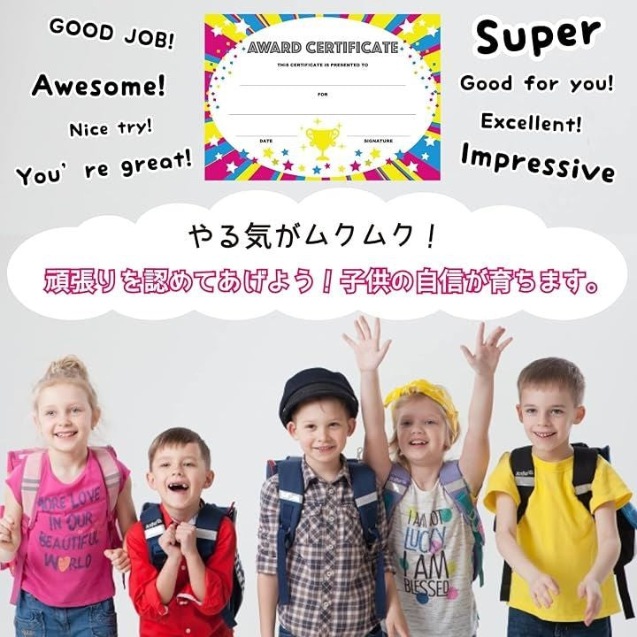 「互換品」LearnEASY 英語の賞状 表彰状 award certificate カード 英語の文例付き QRコード 表彰状 子ども キッズ 大容量 (ポップPOP, 100枚) |