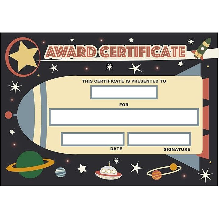 「互換品」LearnEASY 英語の賞状 表彰状 award certificate カード 英語の文例付き QRコード 表彰状 子ども キッズ 大容量 (宇宙Space, 30枚) |