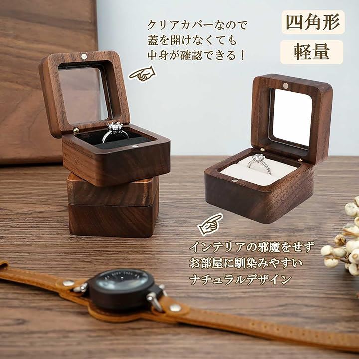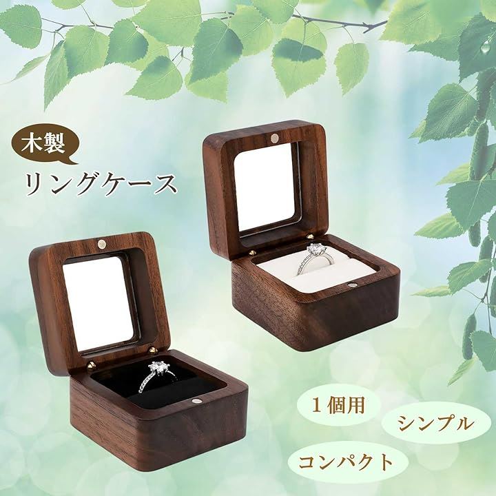リングケース 木製 リングボックス 指輪 シンプル ウッド ジュエリー 持ち運び 収納