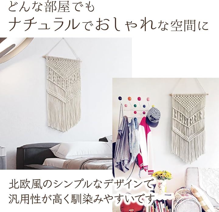 タペストリー マクラメタペストリー マクラメ編み マクラメカーテン 北欧 おしゃれ ボヘミアン インテリア 雑貨 シンプル ナチュラル おうちスタジオ ハンギング 壁掛け ハワイアン雑貨