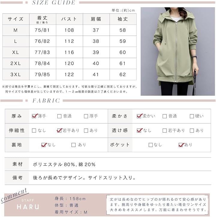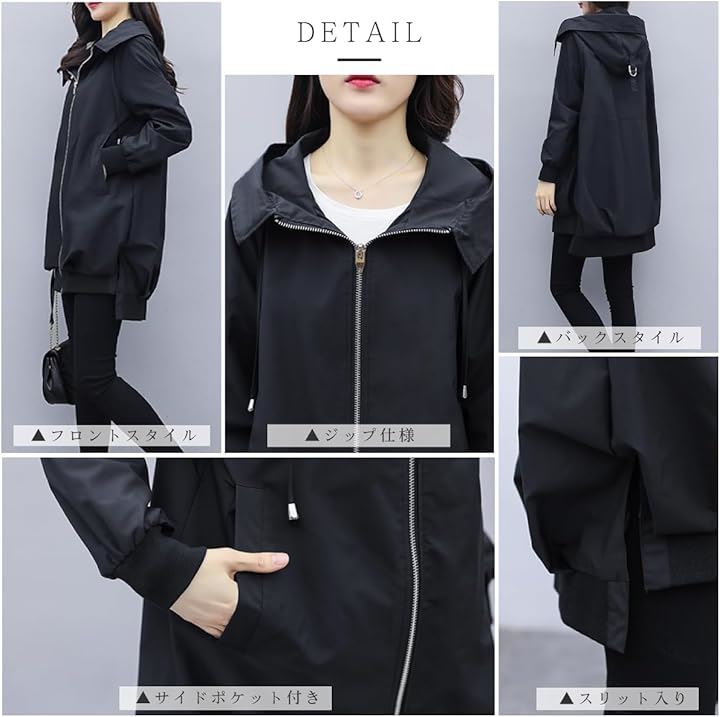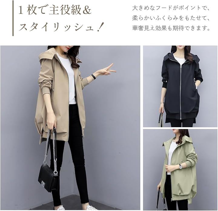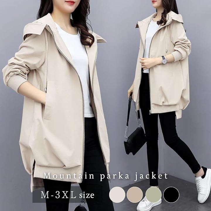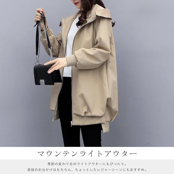 [ウェアビー] ジップ マウンテンパーカー アウター 春 体型カバー カジュアル 羽織り レディース 長袖 上着 スプリングコート パーカー 雨具 梅雨 撥水 きれいめ おしゃれ コクーン ライトアウター 韓国 大きいサイズ ビッグシルエット |