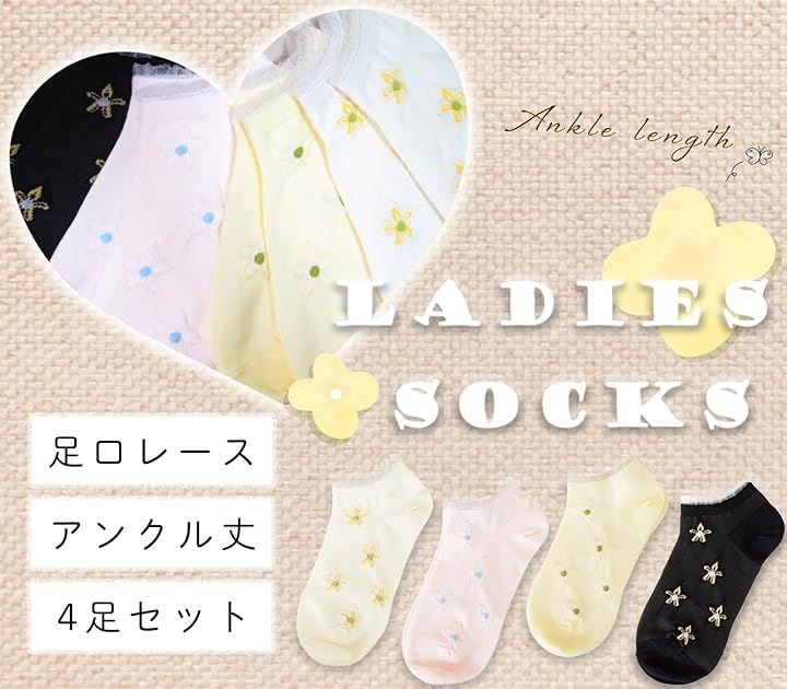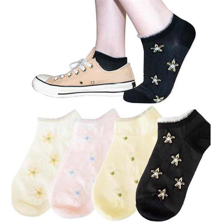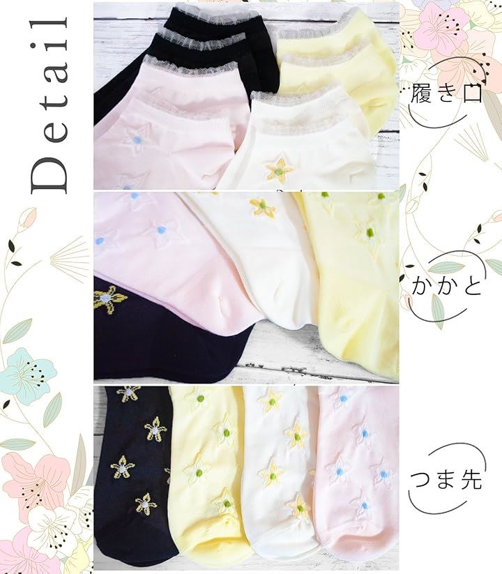 靴下 ソックス レディース セット 花柄 スニーカー アンクル丈 アンクレット 足口 レース くるぶし丈 可愛い 箱入り 女性 丈夫 薄い 伸びる ワイド 耐久 上品 防滑 無臭 女の子 耐久性 丈短め