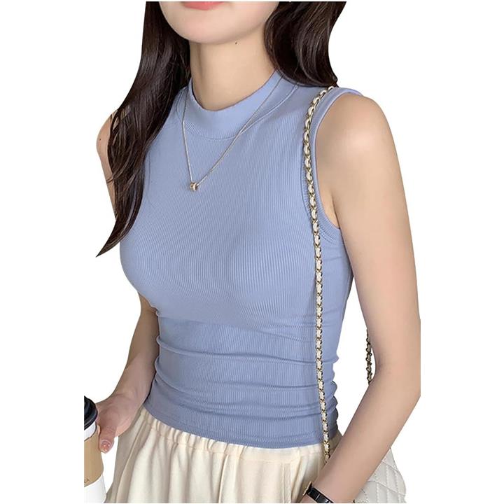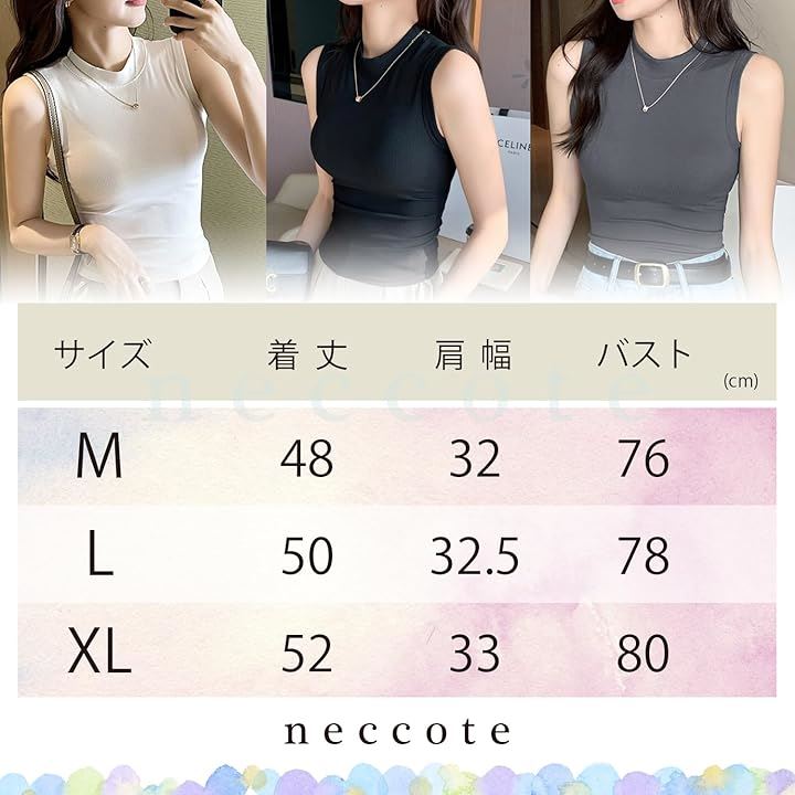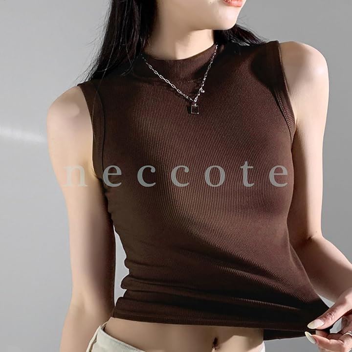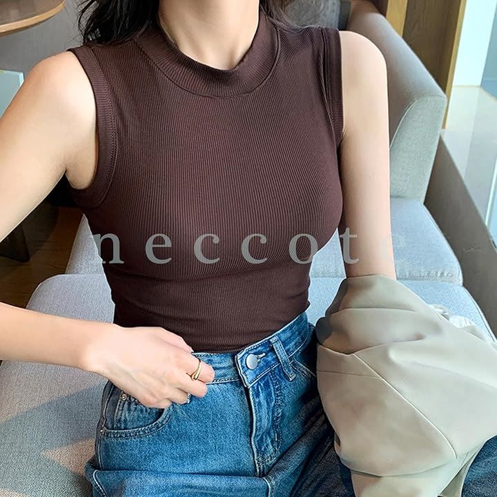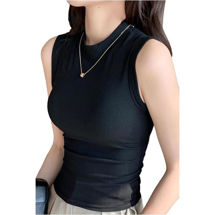[ネコート] ノースリーブ レディース ハイネック トップス タンクトップ カットソー インナー 無地 |