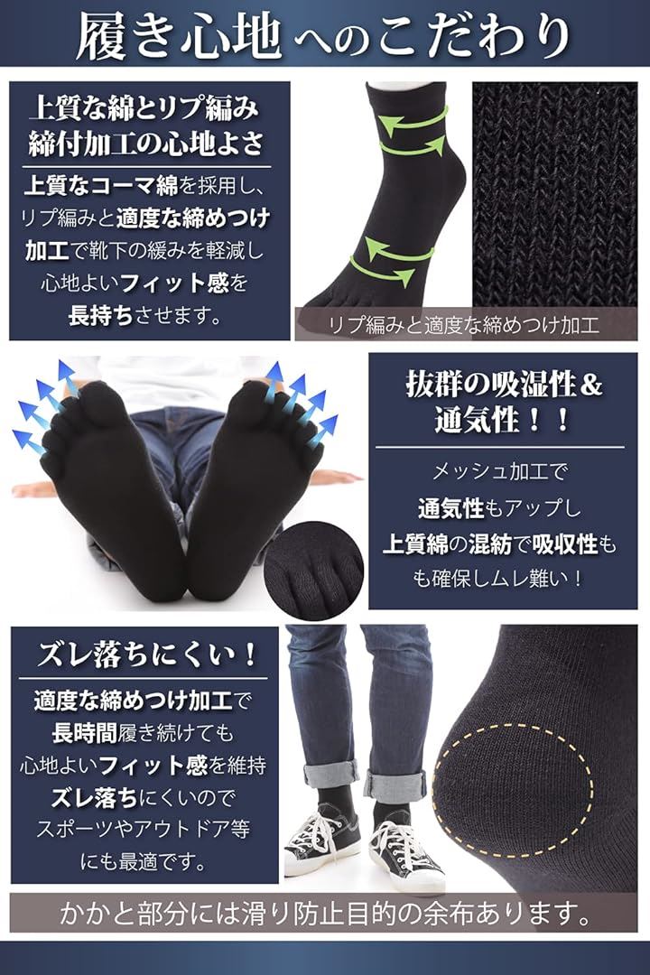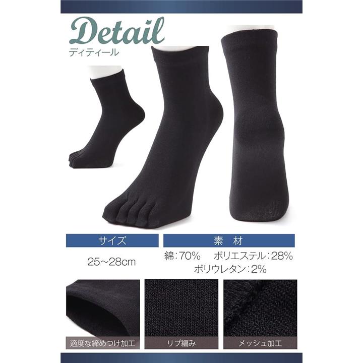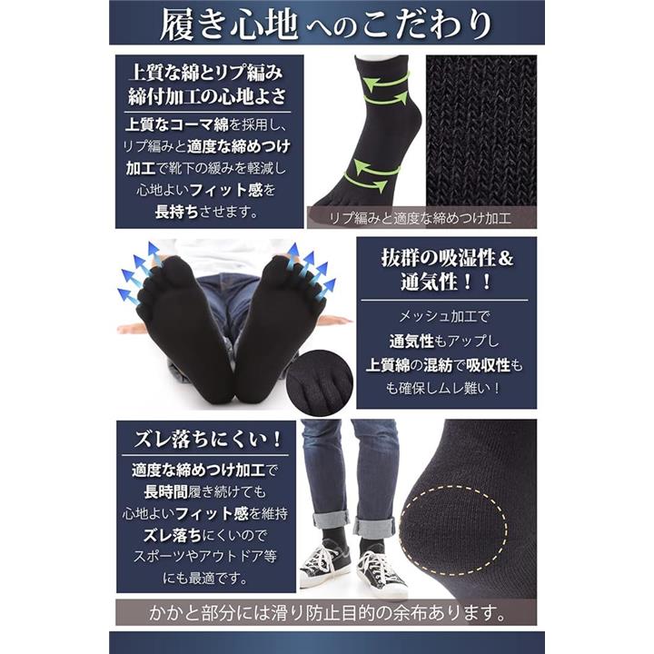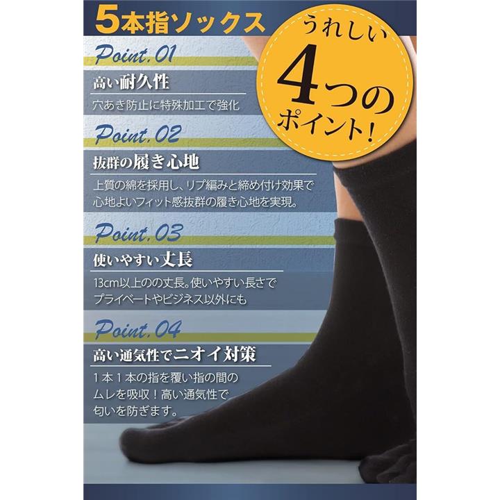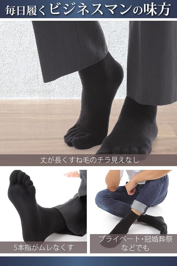 五本指ソックス メンズ セット ビジネス 防臭 通気 頑丈 無臭 黒