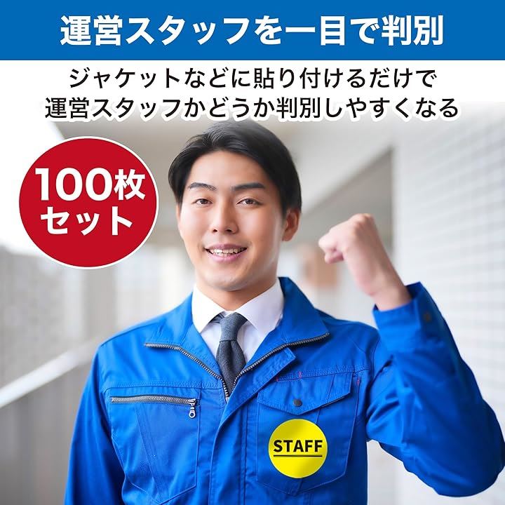 EdisonBrainSTAFFワッペンシール 貼り直し可能 スタッフ イベント コンサート ライブ 物販 直径8cm 100枚セット
