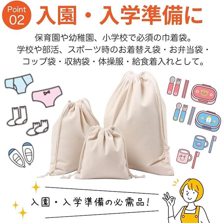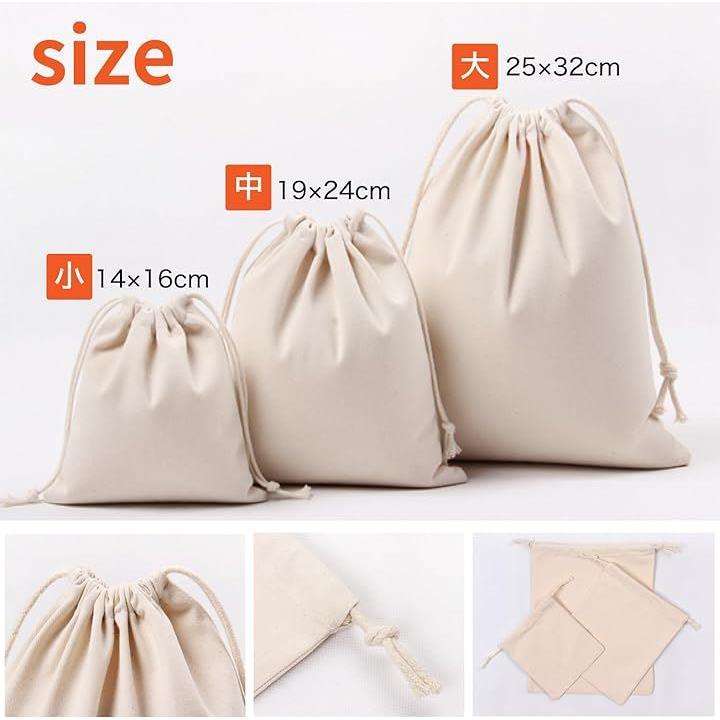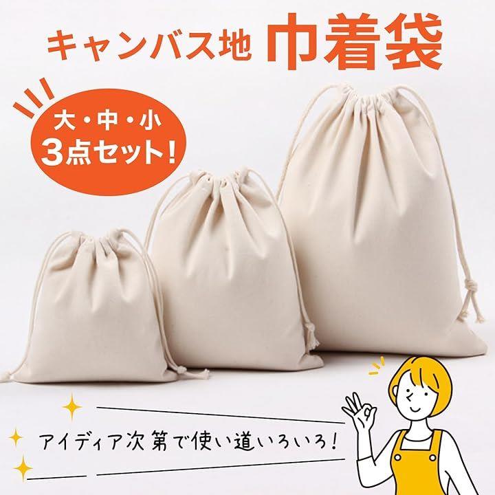 巾着袋 3点セット 帆布 無地 キャンバス 収納 きんちゃく 大・中・小 3枚1セット
