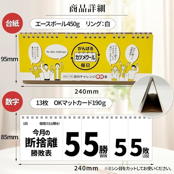 自分チャレンジ勝敗表 習慣化 目標達成 タスク管理 ToDo トレーニング 勉強 グッズ 休肝日 禁煙 ダイエット ウォーキング 節約 断捨離 スマホ 日めくり