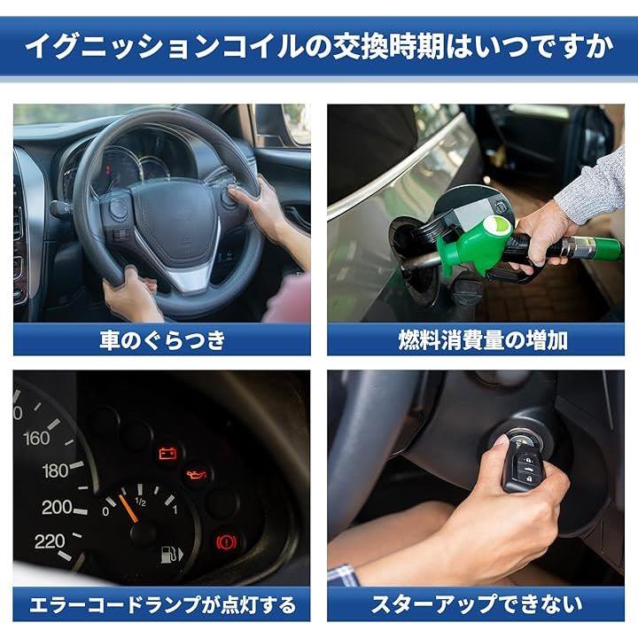 この新しいイグニッションコイルのセットは、車の揺れ、失敗した始動、遅い加速、燃費の増加などの問題を解決するために、欠陥のある純正イグニッションコイルと交換するために使用されます。