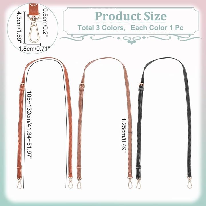 3 色 Pu レザー調節可能なクロスボディバッグストラップ 105-132cmショルダーバッグストラップ交換用PUレザーハンドバッグストラップ 3個2