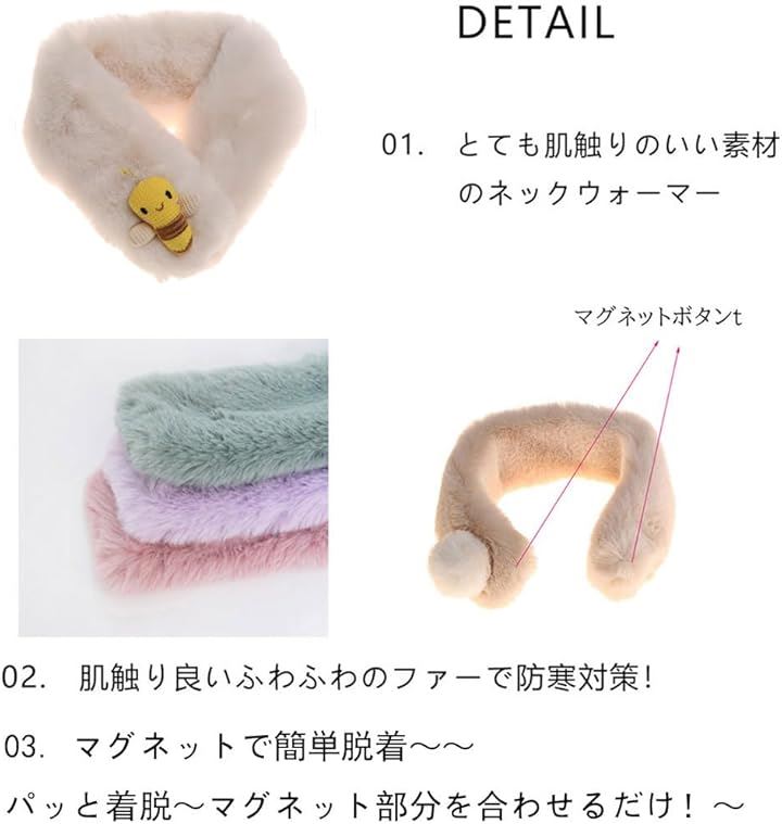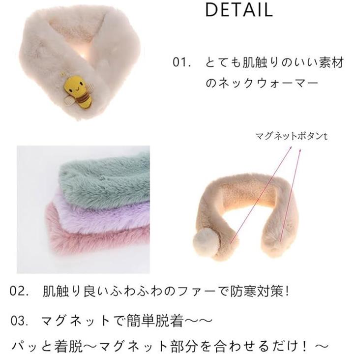 ネックウォーマー キッズ 女の子 男の子 マフラー 子供 ファー スヌード 暖かい ふわふわ 防寒 Bee コーヒー
