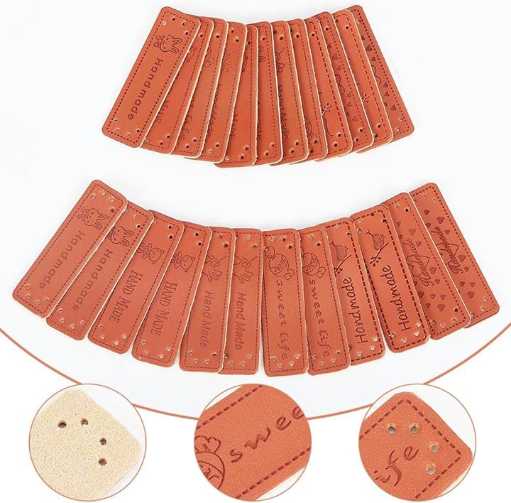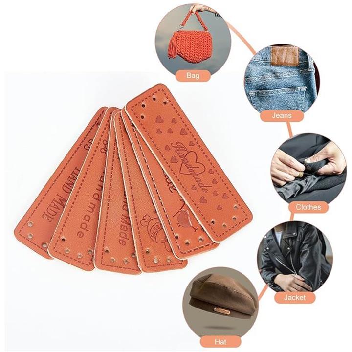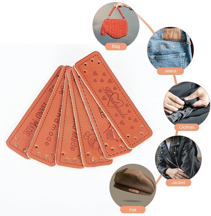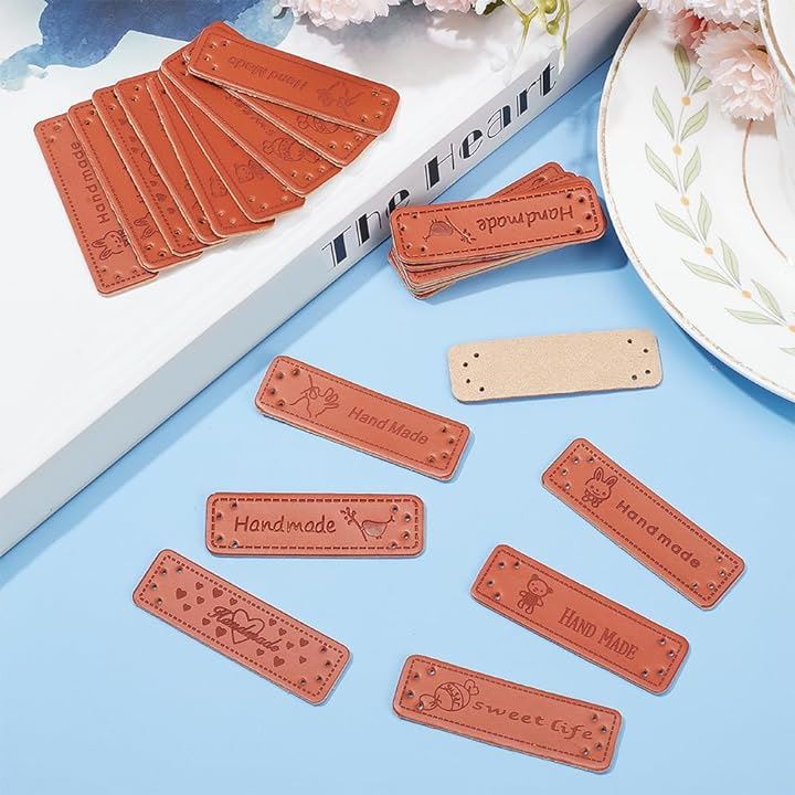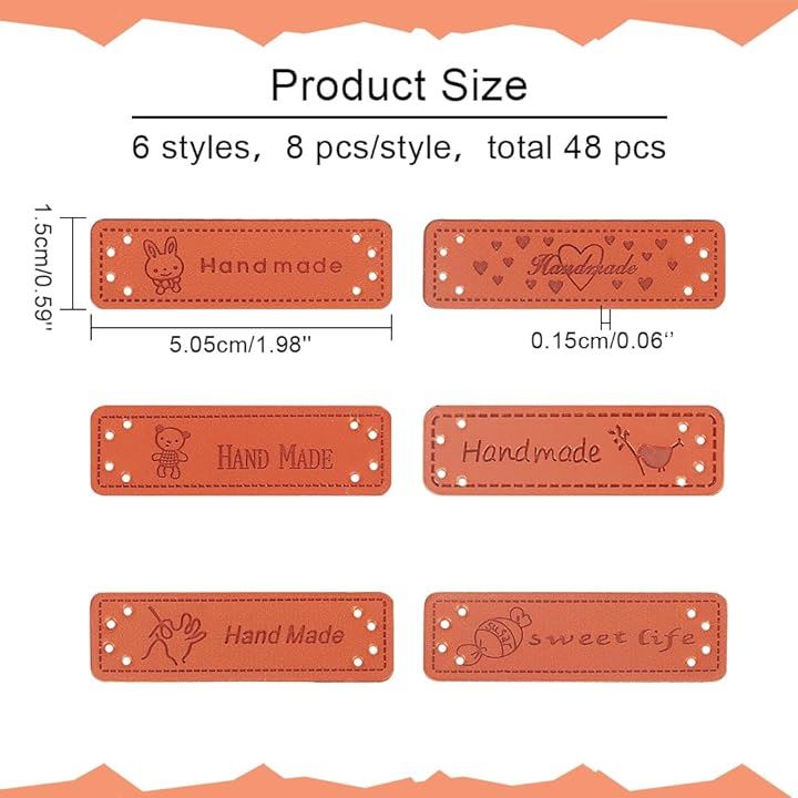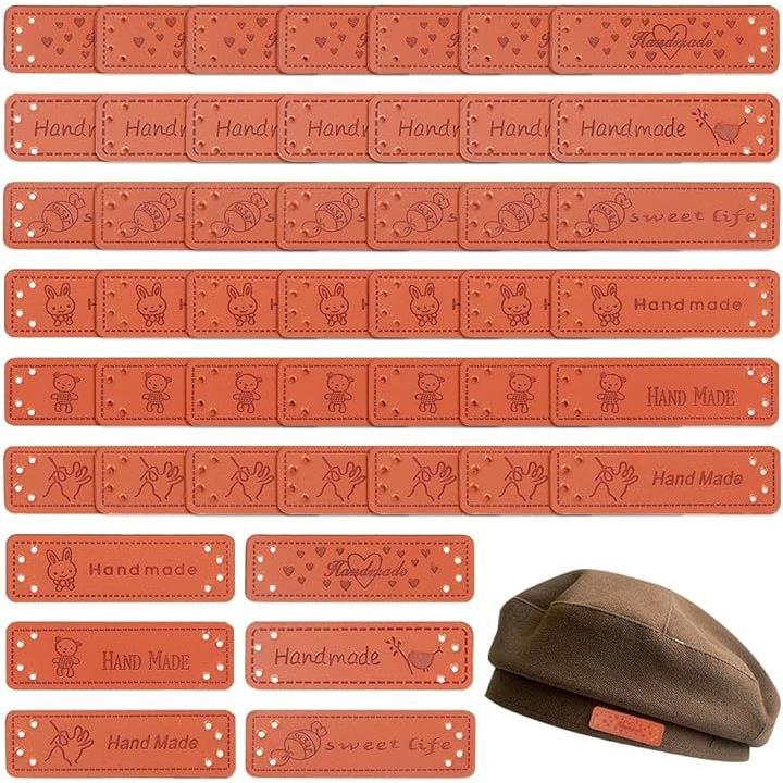 手作り PUレザーラベル 48個 6スタイル 長方形 エンボスタグ 穴付き装飾タグ装飾