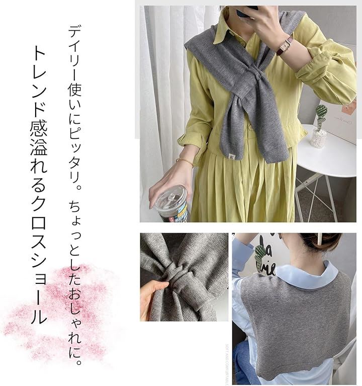 フロント クロス ショール スカーフ エアコン 空調 防寒 ニット シンプル 無地 レディース ガード 小顔効果 保温 韓国