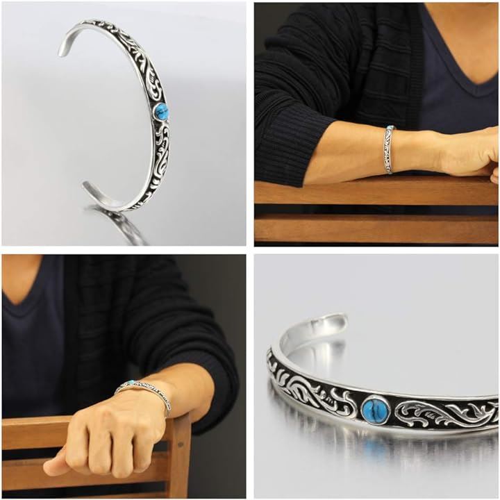 シルバー 925 バングル アラベスク ターコイズ 男女兼用 ブレスレット
