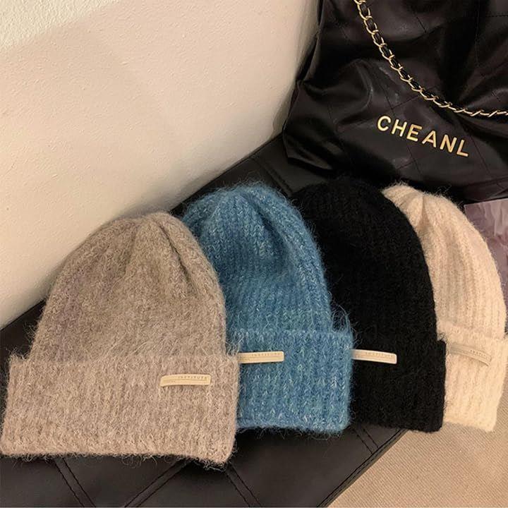 ニット 帽 ビーニー 帽子 ワッチ 防寒 保温 ふわふわ 伸縮性 柔らかい 無地 レディース 小顔効果 ガーリー ストリート 韓国