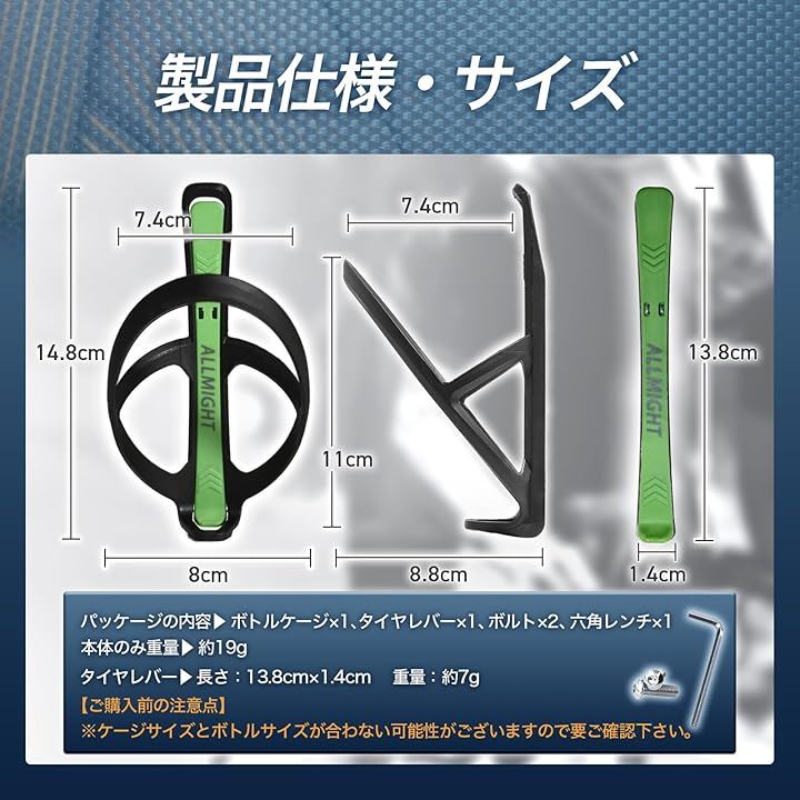 ボトルケージ Wide 超軽量 高耐久 ボルトと工具とタイヤレバー付き 本体重量約19g ドリンクホルダー ボトルホルダー ロードバイク 約75mmボトル対応