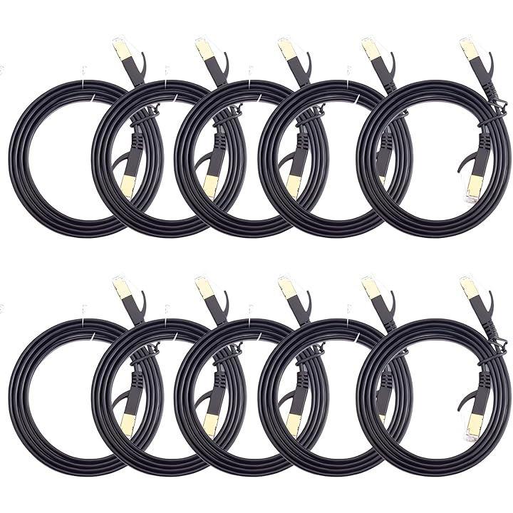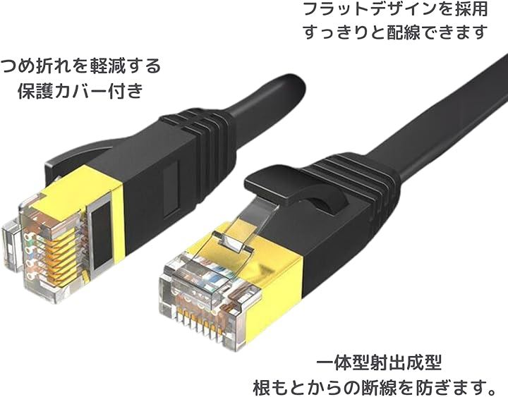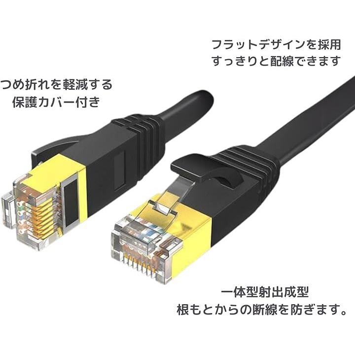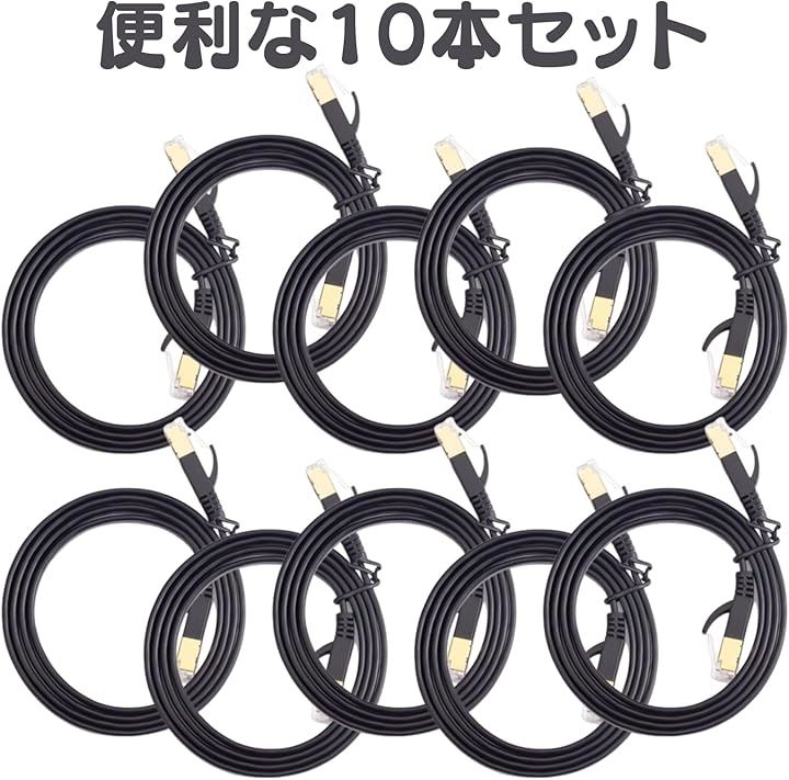 互換品LANケーブル10本 セット CAT7 フラット 爪折れ防止 平形 すっきり収納 カテゴリー7 イーサネットケーブル きしめん