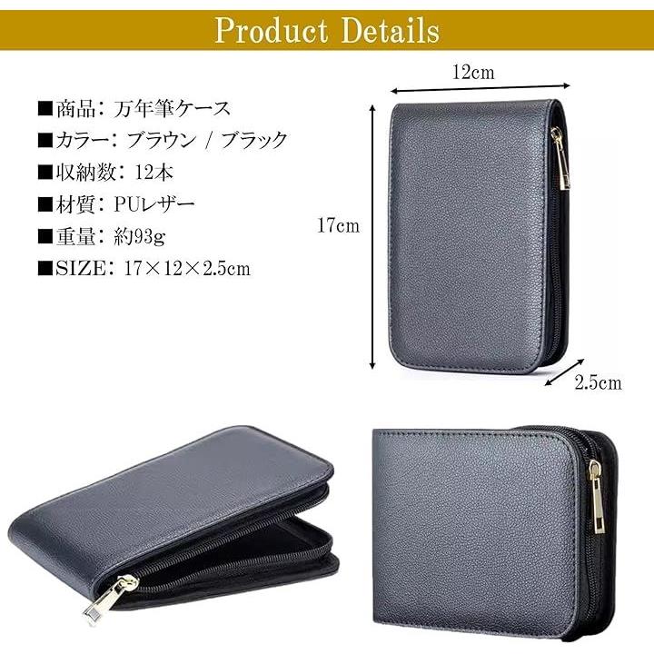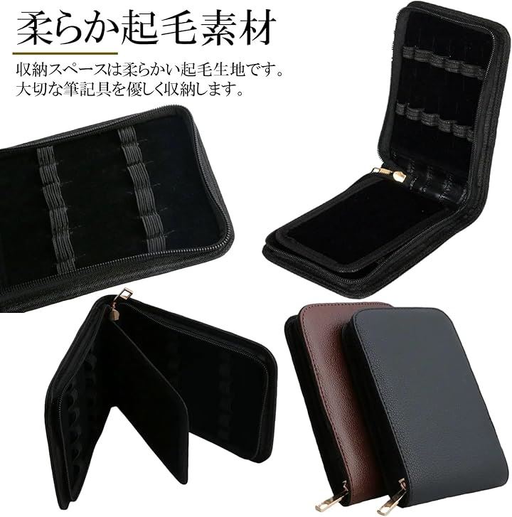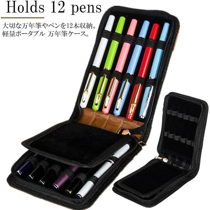 万年筆 ケース 12本 PUレザー ペンケース 大容量 収納 シンプル