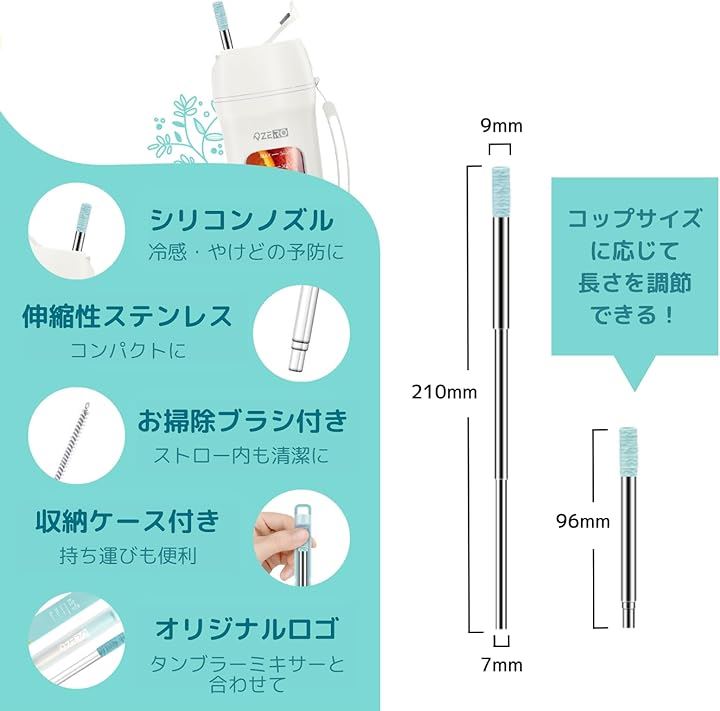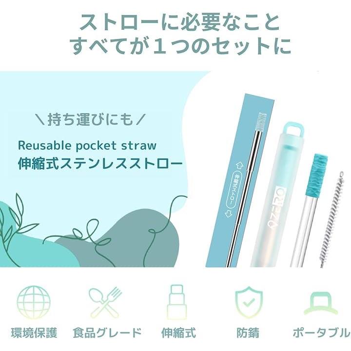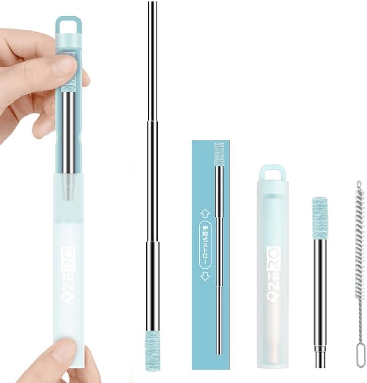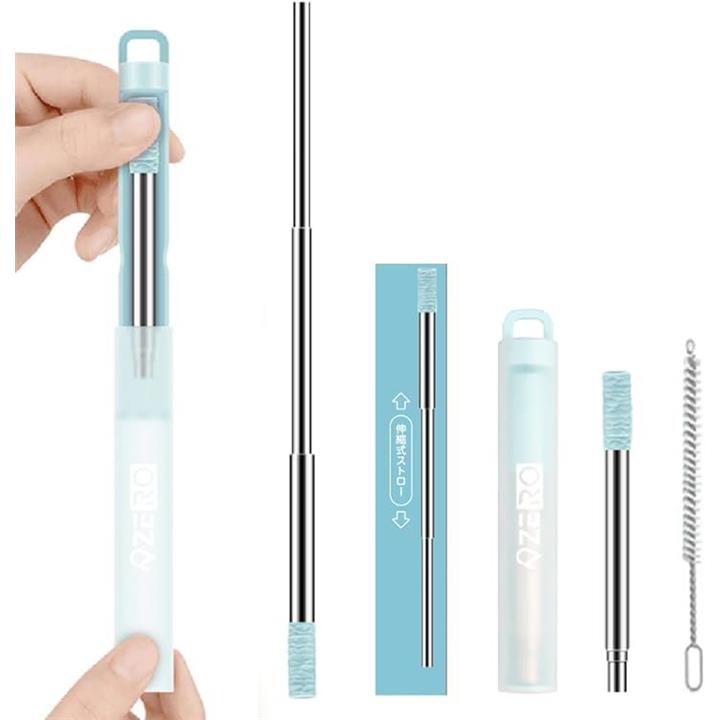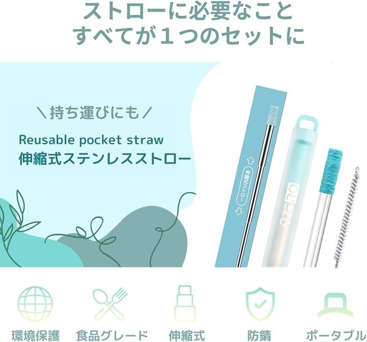 ZERO ポケットストロー 伸縮式ステンレス製 ストローブラシ・ケース付き 携帯 折りたたみ SDGs サステナブル