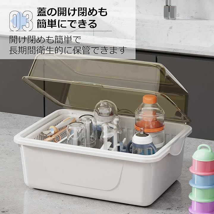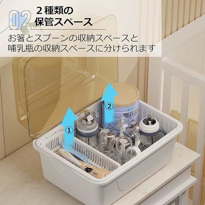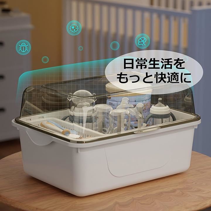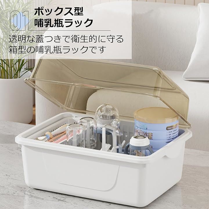 哺乳瓶ラック 乾燥 収納ボックス ほこり防止 衛生的 カバー付き 持ち運び便利 大容量