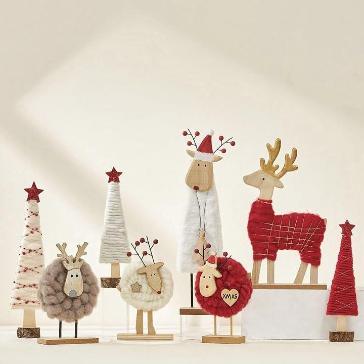 クリスマス 置物 飾り 北欧風 ウール フェルト ツリー サンタクロース トナカイ オーナメント 木製 デコレーション 卓上