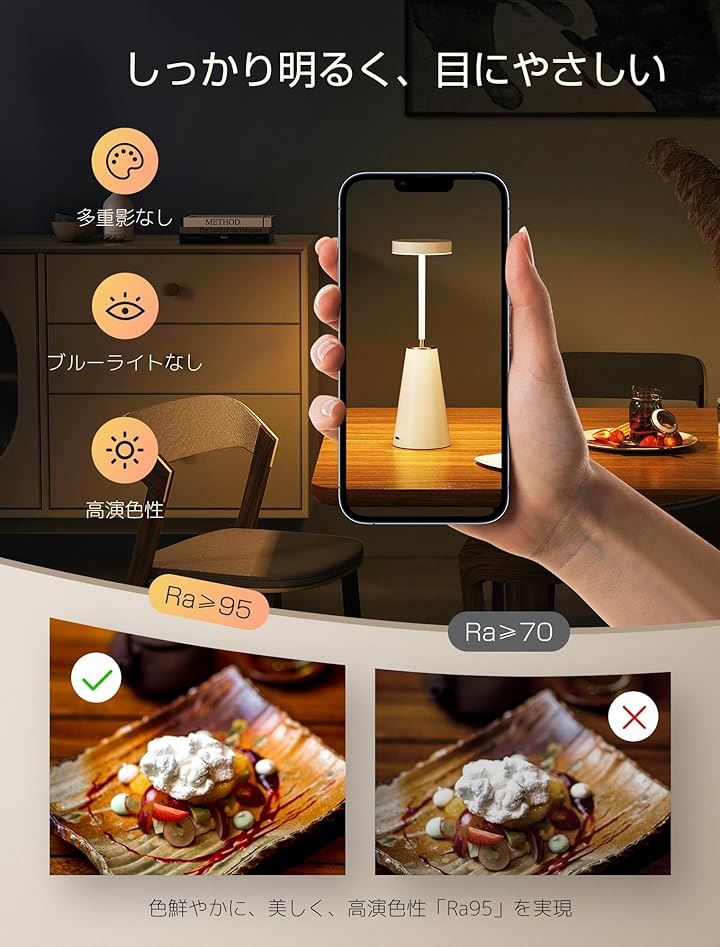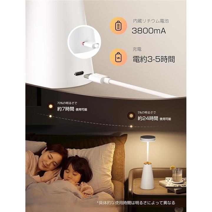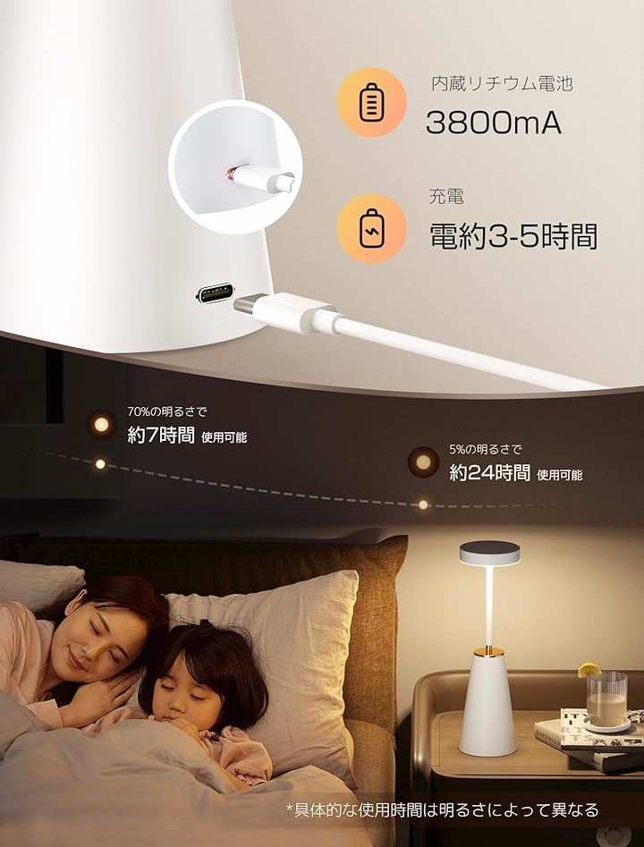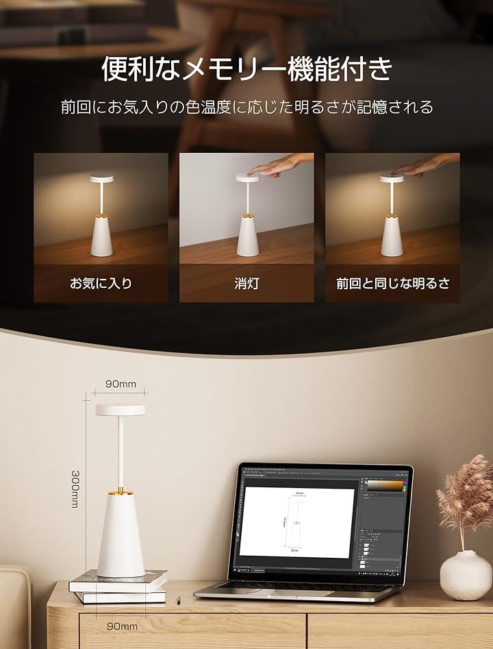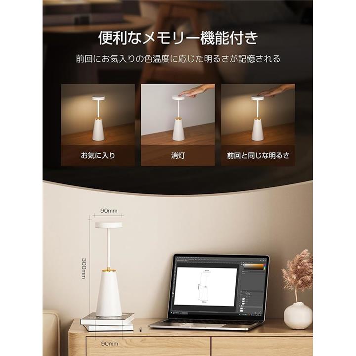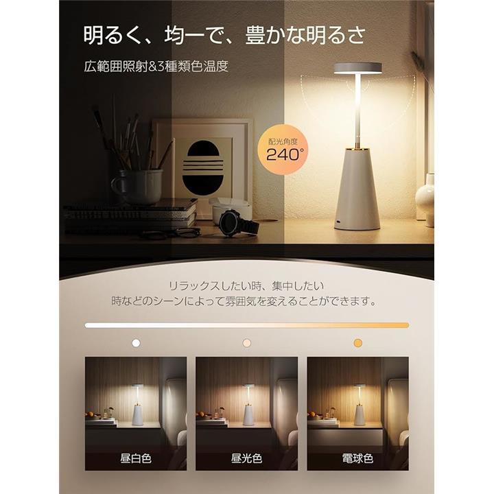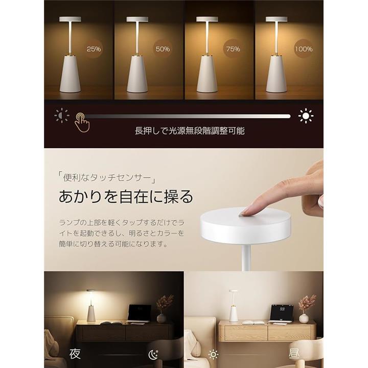 テーブルランプ コードレス スタンドライト 間接照明 卓上ライト タッチセンサー式 3800mAh 3色モード 無段階調光 インテリア