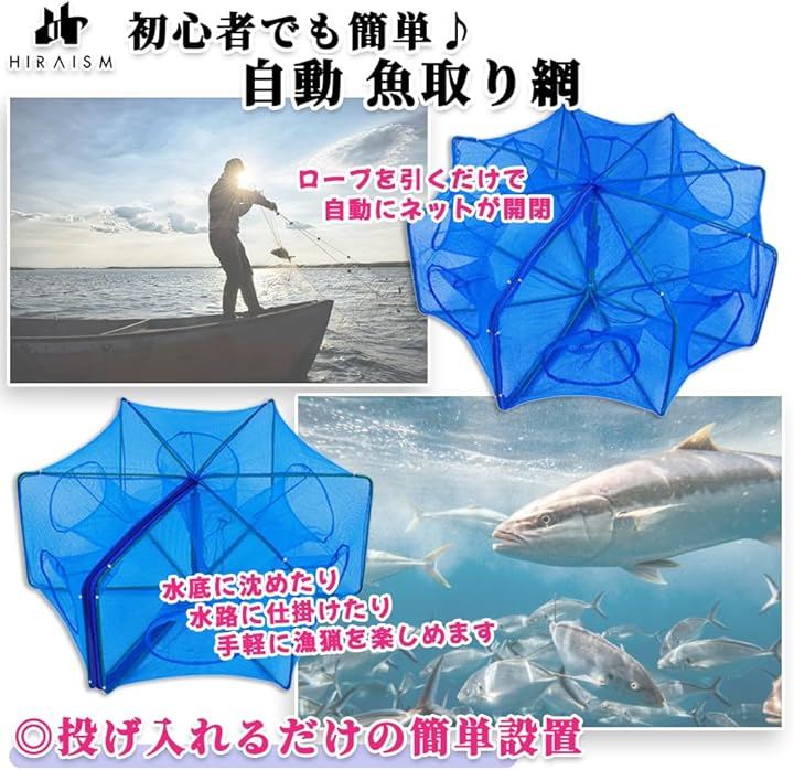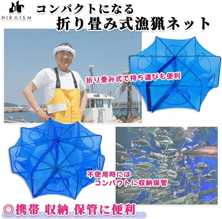 魚 網 仕掛け 罠 かご エビ カニ 小魚 魚取り網 漁具 折畳み ネット 一網打尽 丈夫