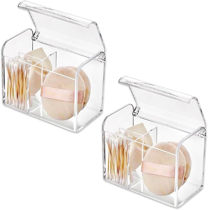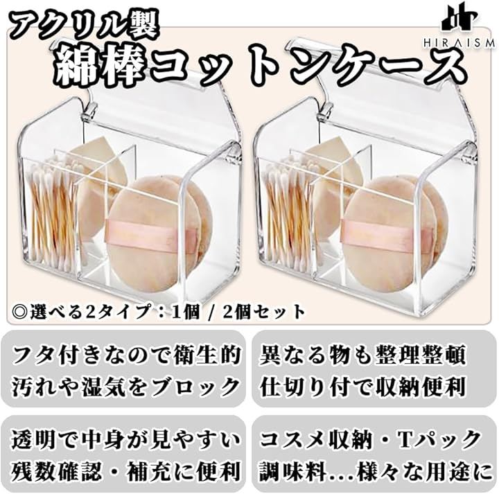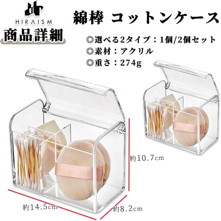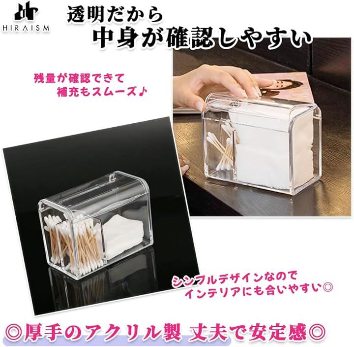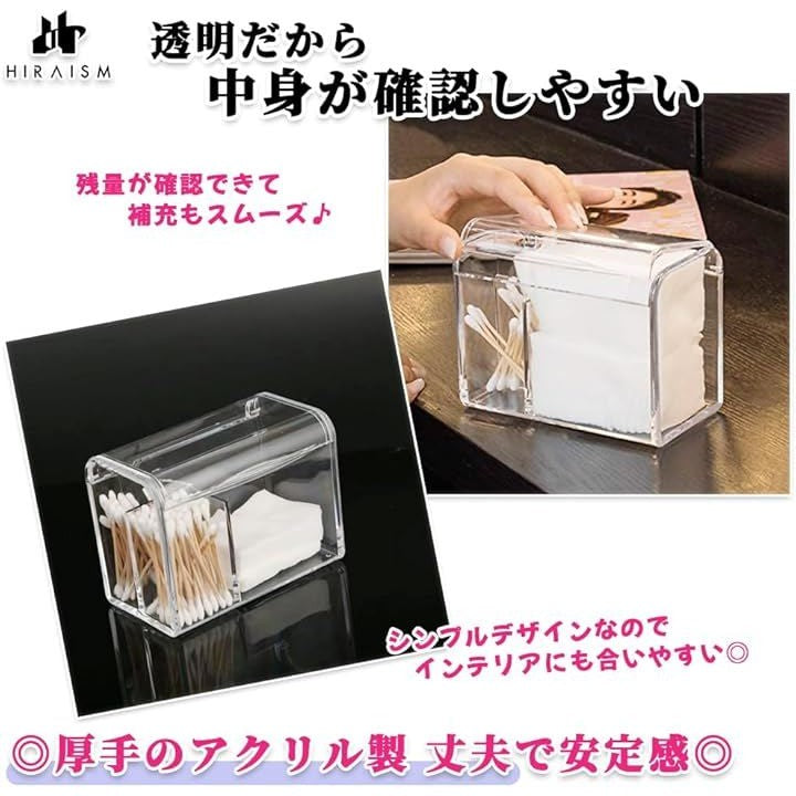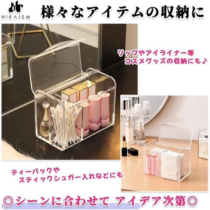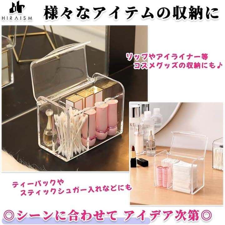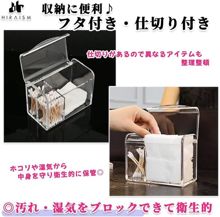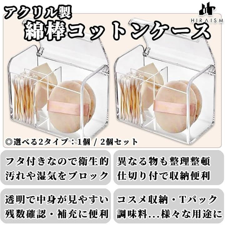 綿棒ケース コットンケース 仕切り 蓋付き おしゃれ 卓上 透明 アクリル製 コスメ 化粧品 収納