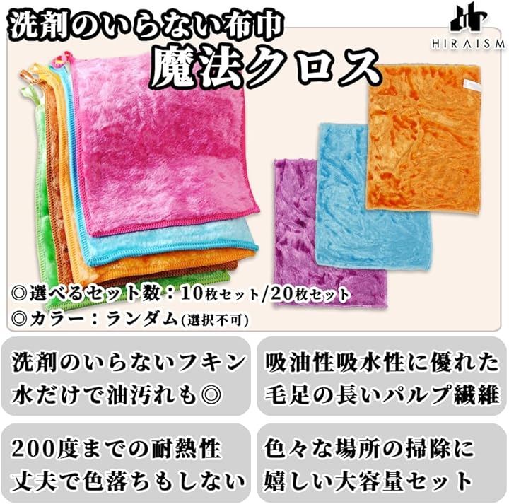 魔法クロス 洗剤の要らない 雑巾 ふきん キッチンクロス 油汚れ マイクロファイバー 天然パルプ繊維 家庭用 業務用 20枚セット