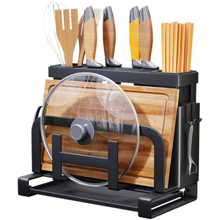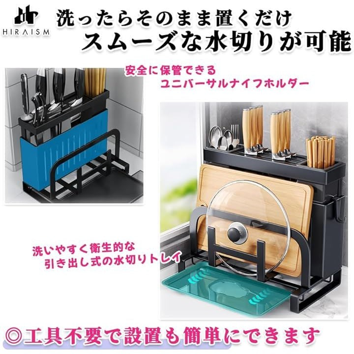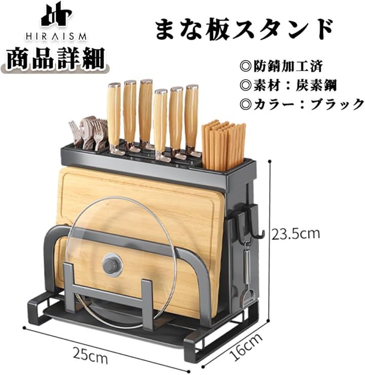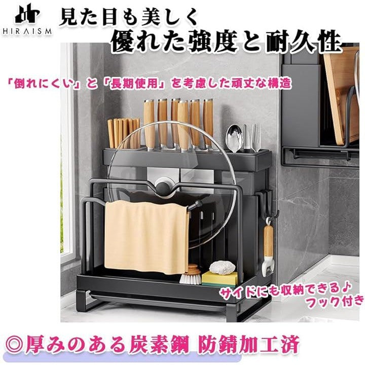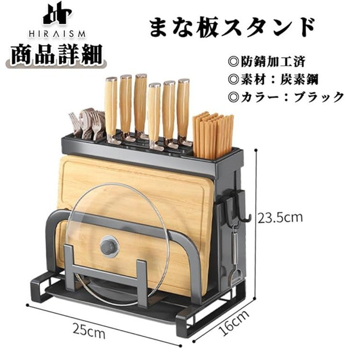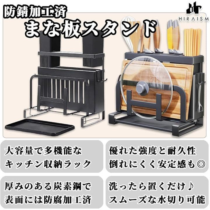 まな板立て 俎板スタンド 包丁 鍋蓋 箸 カトラリー 置き 多機能 収納 ラック 卓上 おしゃれ ステンレス 水切りトレー付き