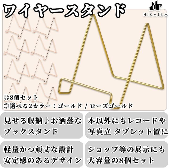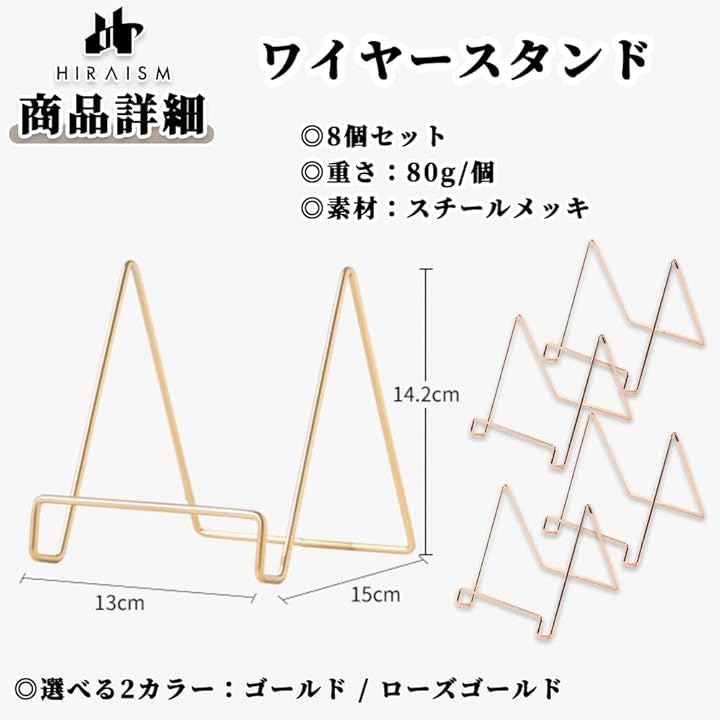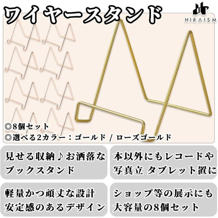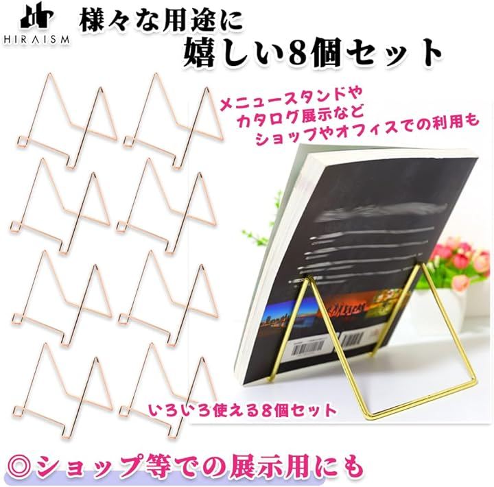 ワイヤースタンド 本立て ブックスタンド 卓上 イーゼル 色紙 カタログ 写真 雑誌 レコード お皿 ディスプレイ 金属製 8個セット