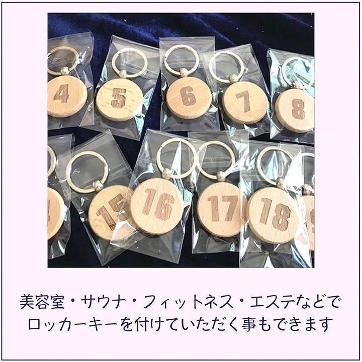 木製 キーホルダー 番号札 無地 ホテル ロッカーキー オリジナル DIY クラフト ウッド 二重リング