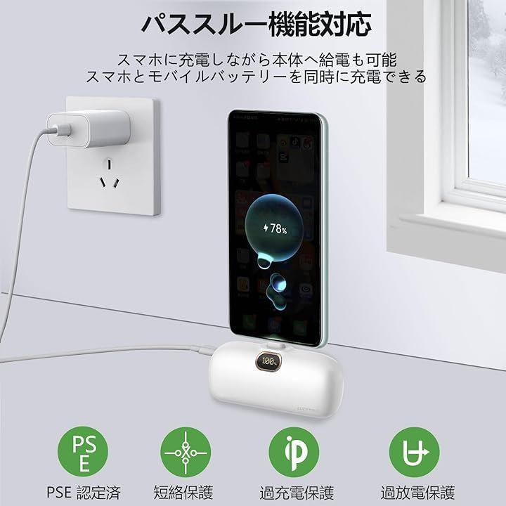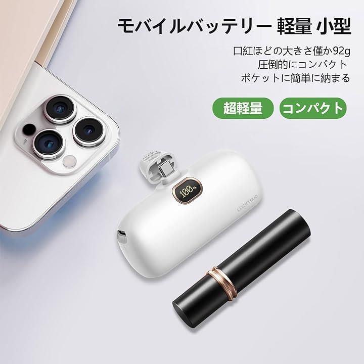 モバイルバッテリー 5000mAh Type-Cコネクター内蔵 直接充電 PD20W急速充電 LCD残量表示 LEDライト付き