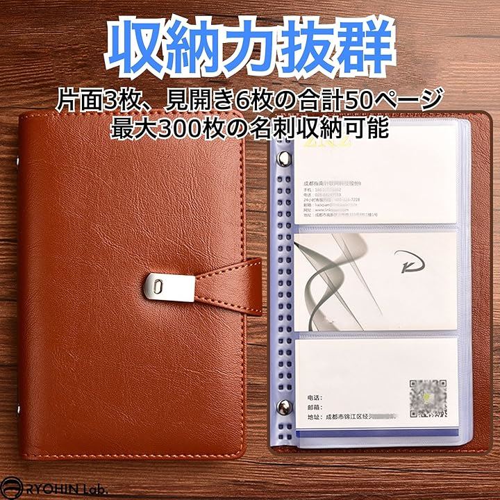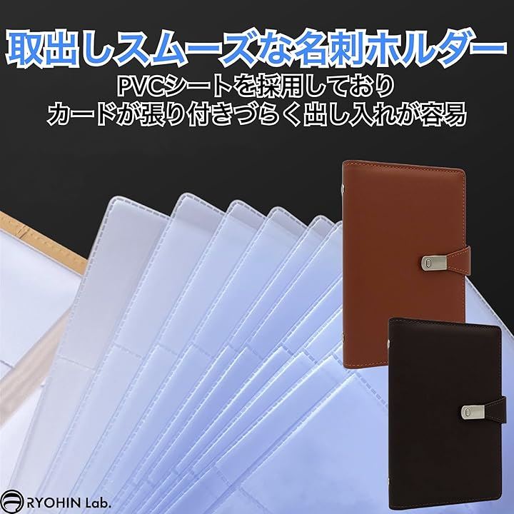 良品ラボ 名刺ホルダー 大容量 300枚収納 横入れ コンパクト 軽量 名刺ファイル おしゃれ PUレザー 1冊