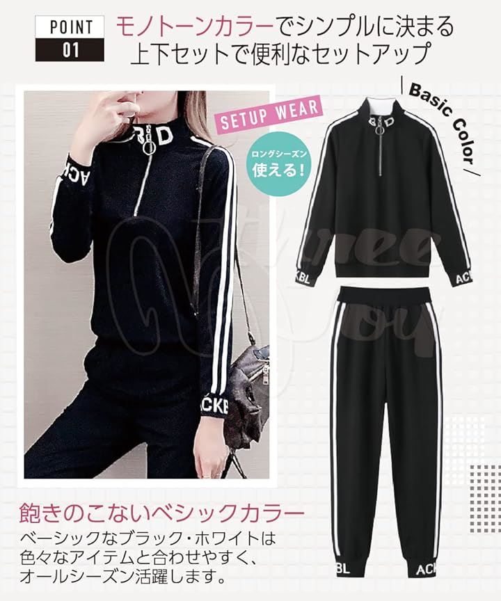 ジャージ レディース ヨガウェア 上下セット 長袖
