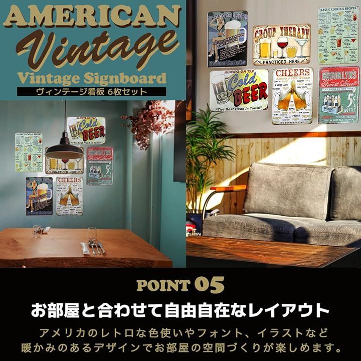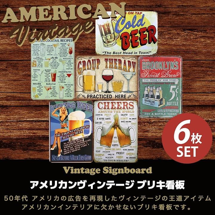 ブリキ 看板 アメリカン 雑貨 ガレージ レトロ アンティーク ビンテージ 6枚