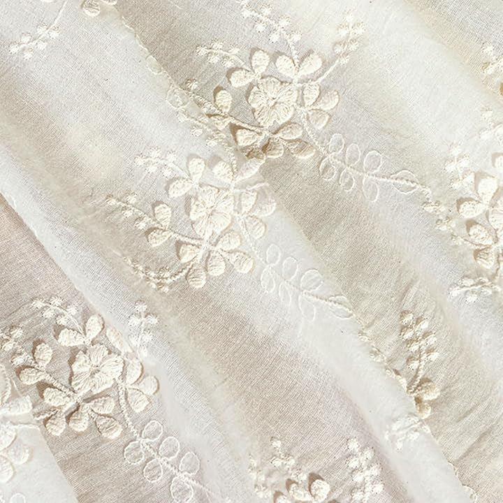 花柄 コットン 刺繍 生地 幅1.35m フラワー 白 布 立体 おしゃれ