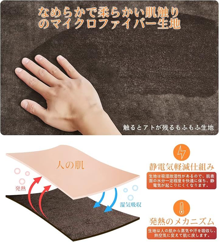 「静電気防止加工」静電気が起こりやすい状態を抑えてくれる加工をしておりますので、乾燥が気になる秋と冬季節でも、安心にお使い頂けます。
