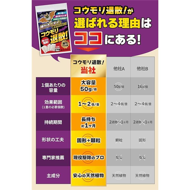 コウモリ退散。 こうもりよけ コウモリ撃退グッズ 忌避剤 置くだけ簡単 強力プロ仕様 天然香料 効き目約1ヶ月 4個入x2P 4~8畳用