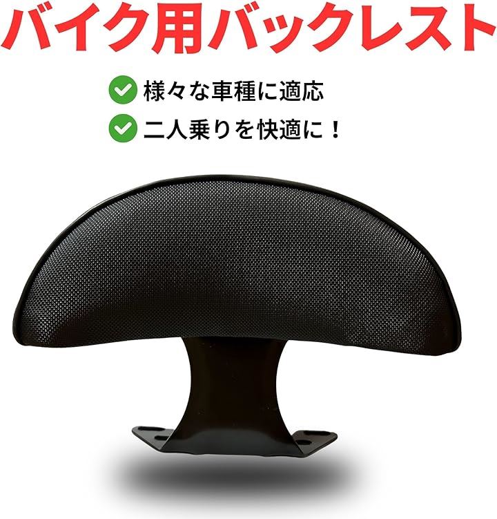 互換品 バイク バックレスト 背もたれ パッド クッション 汎用 振れ止め 接続金具付き スクーター 原付 防水加工 簡単取付 M6