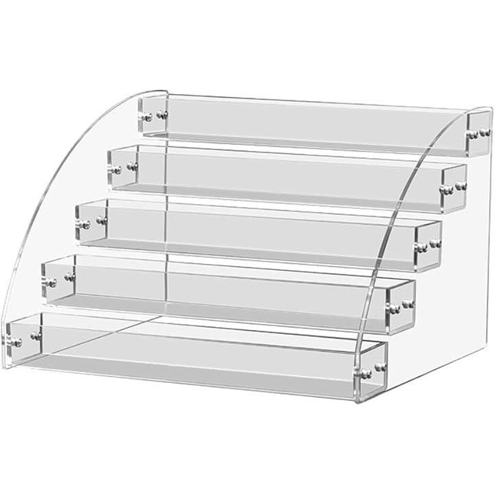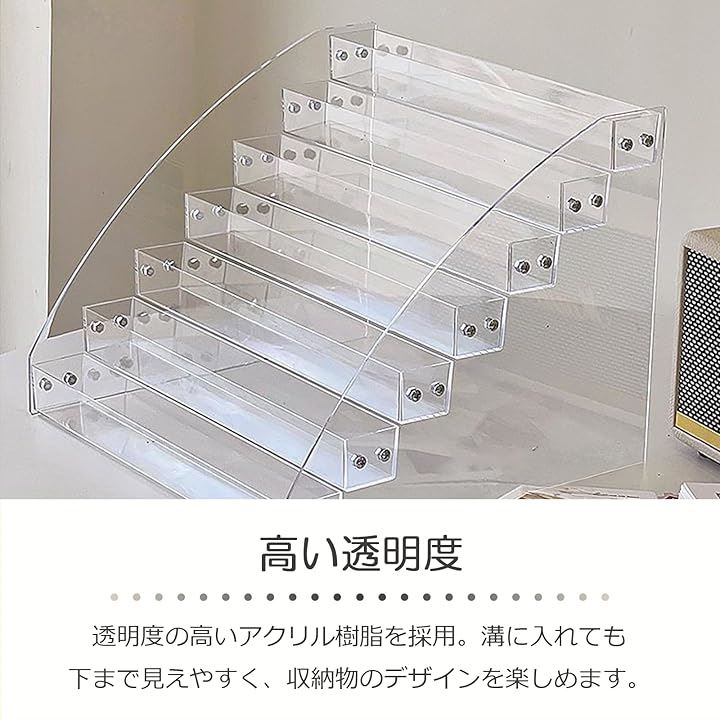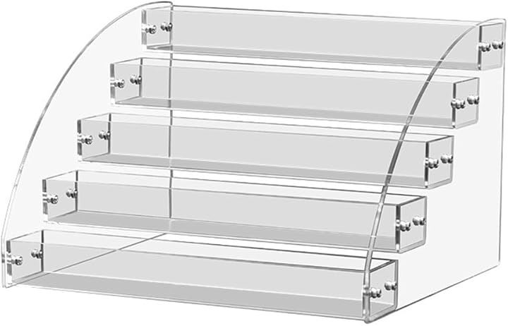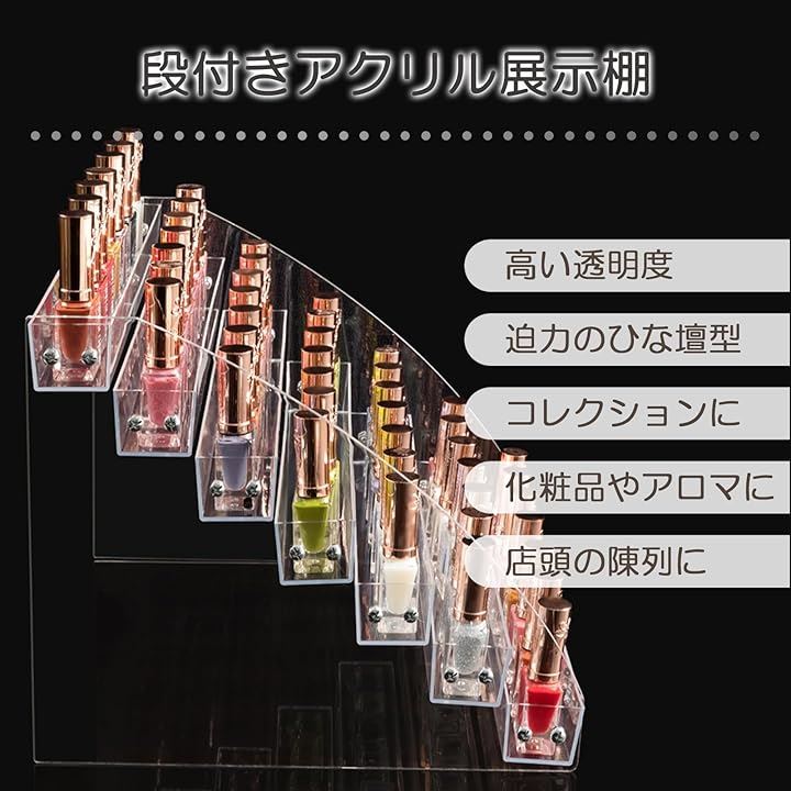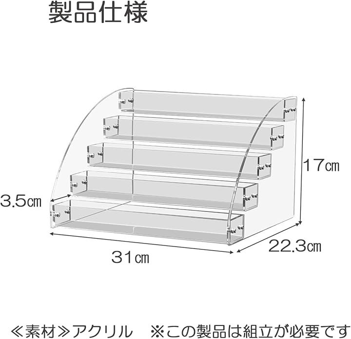 アクリル ディスプレイ 棚 溝付 化粧品 フィギュア 展示 台 透明 ひな壇 陳列棚 5段 幅31cmx高さ17cm