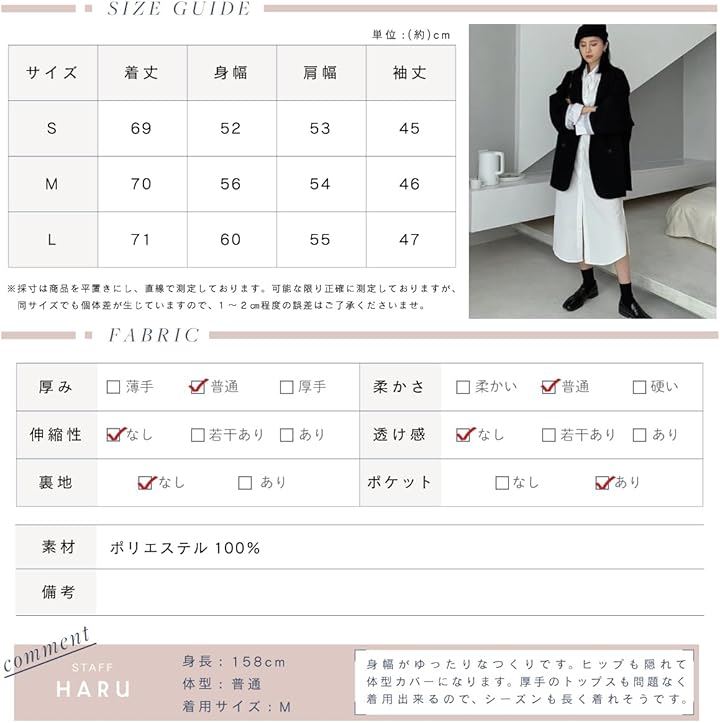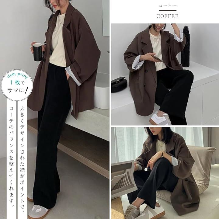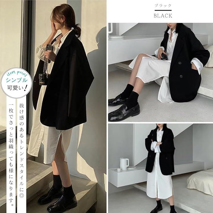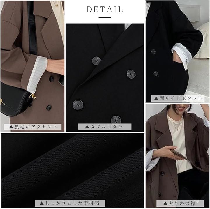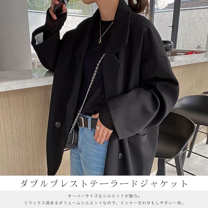 ウェアビー オーバーサイズ ダブルブレスト テーラードジャケット 春服 オケージョン レディース アウター ブレザー スーツ カラー じゃけっと カジュアル オフィス フォーマル ビジネス ポケット きれいめ 通勤 おしゃれ