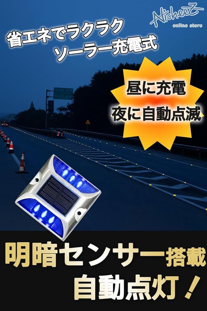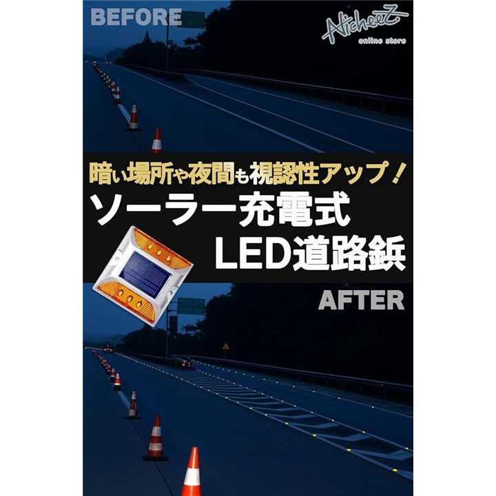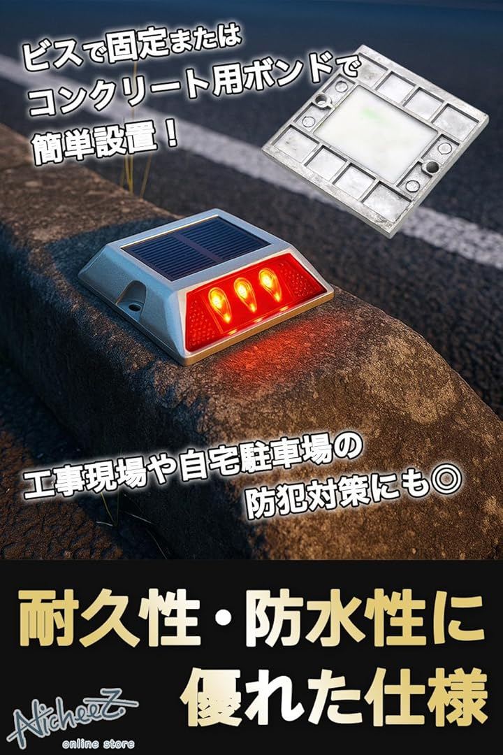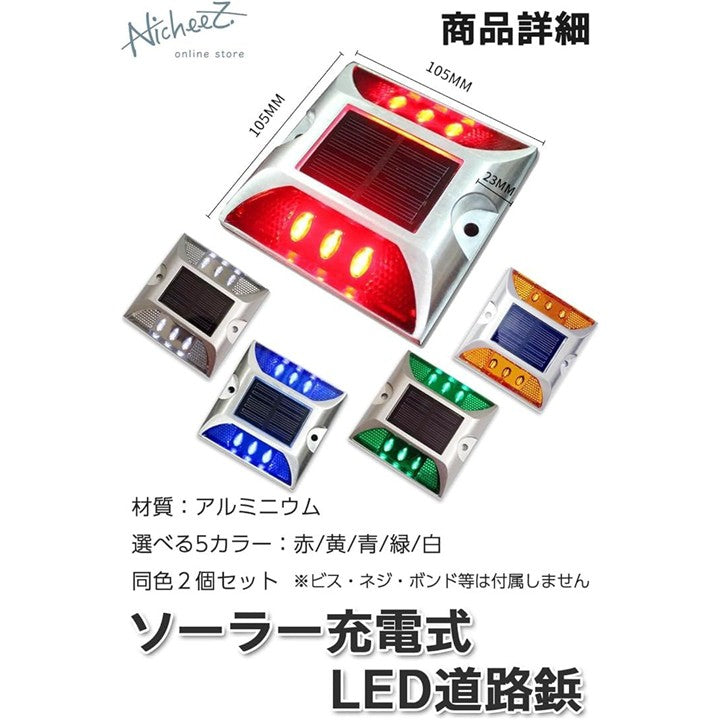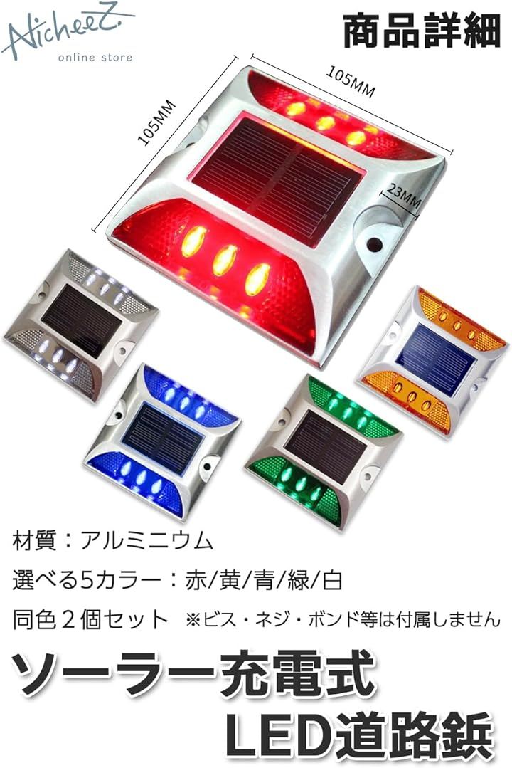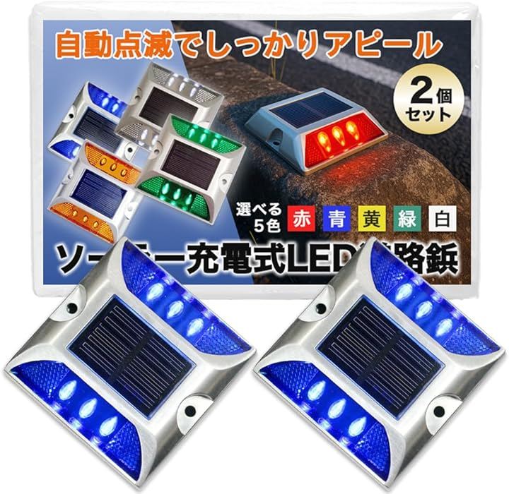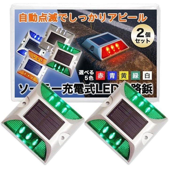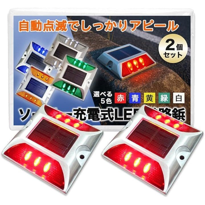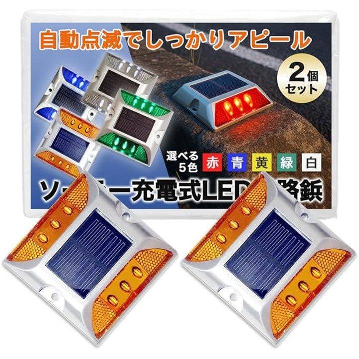 ソーラー ライト 道路鋲 LED 点滅式 駐車場 路面灯 カーブ 交差点 パーキング ブロック 自動充電 屋外 2個セット