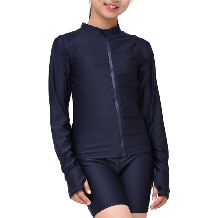 [SCHOOL HERO] スクール水着 ラッシュガード ジップアップ 男女児兼用 ファスナー キッズ 紫外線対策加工 指穴付き (140cm) |