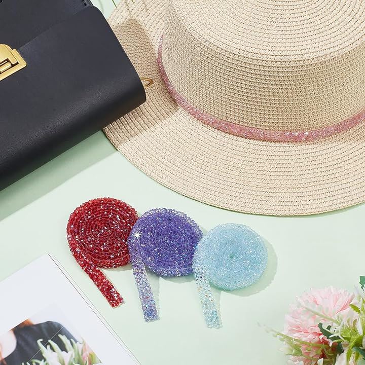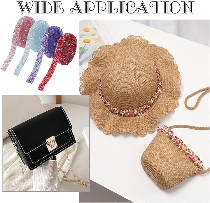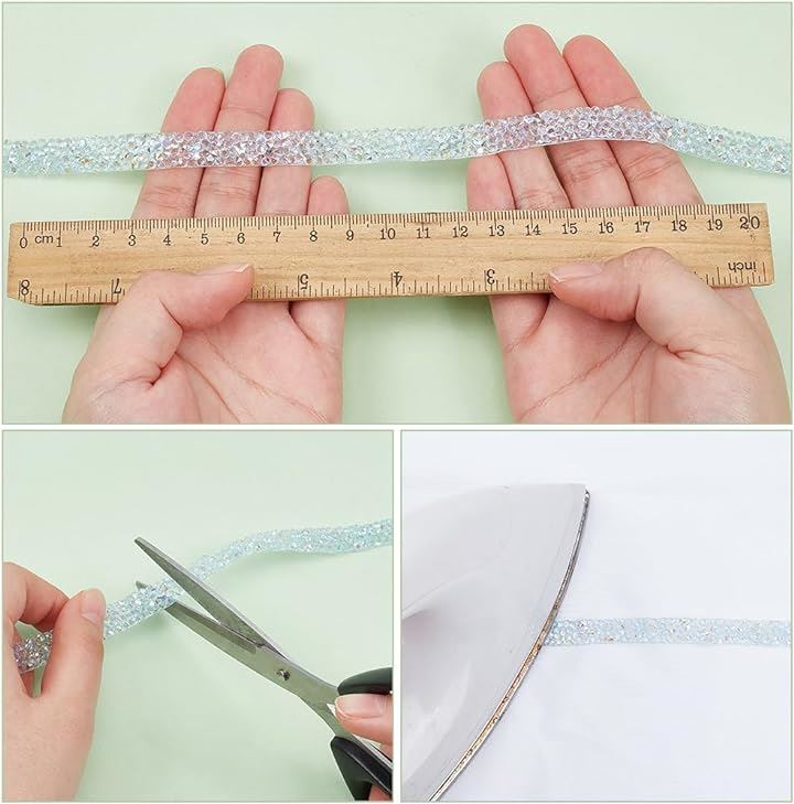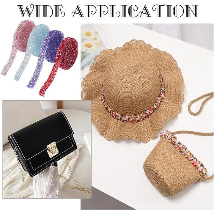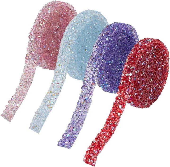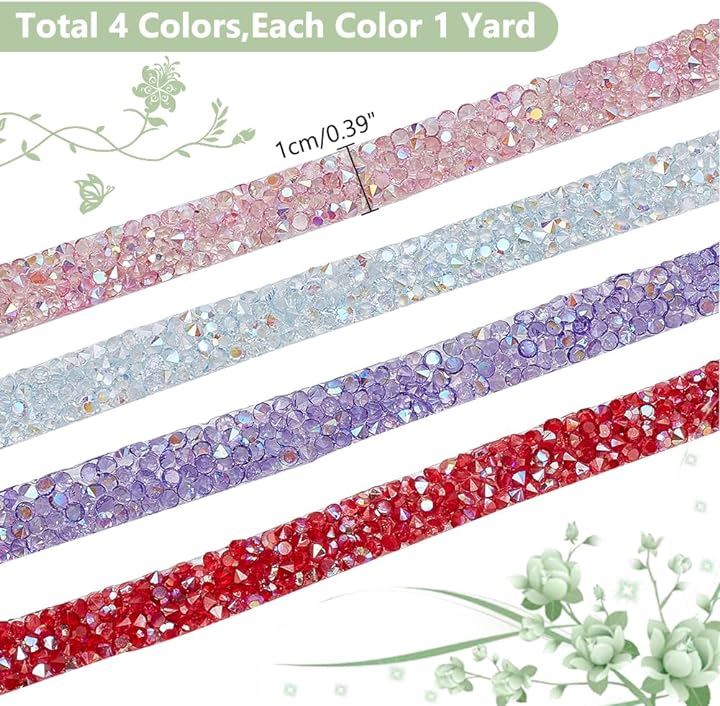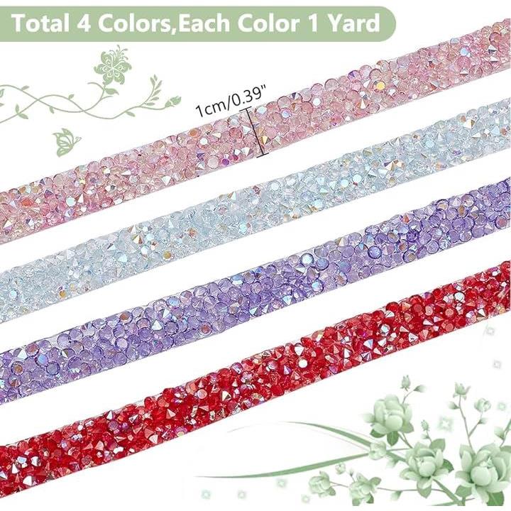 4M クリスタル ラインストーン リボン ストラップ 4色 ホットフィックス スパークリングラインストーン 装飾 自己粘着 アイロンテープ DIY